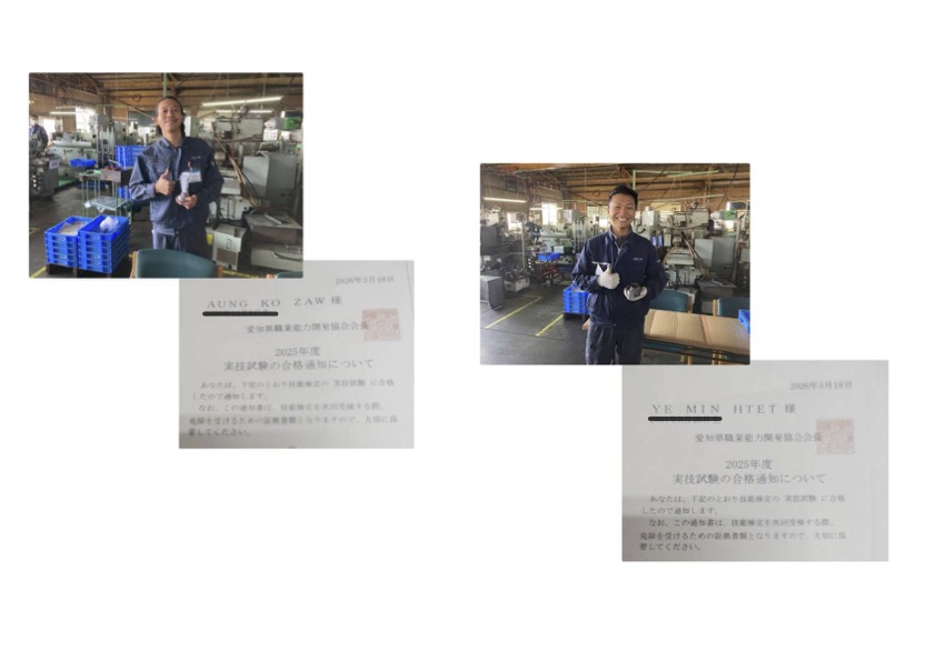 先日、技能実習生5期生4名が随時3級試験を受けました(3月24日の「技能実習Days」参照)。