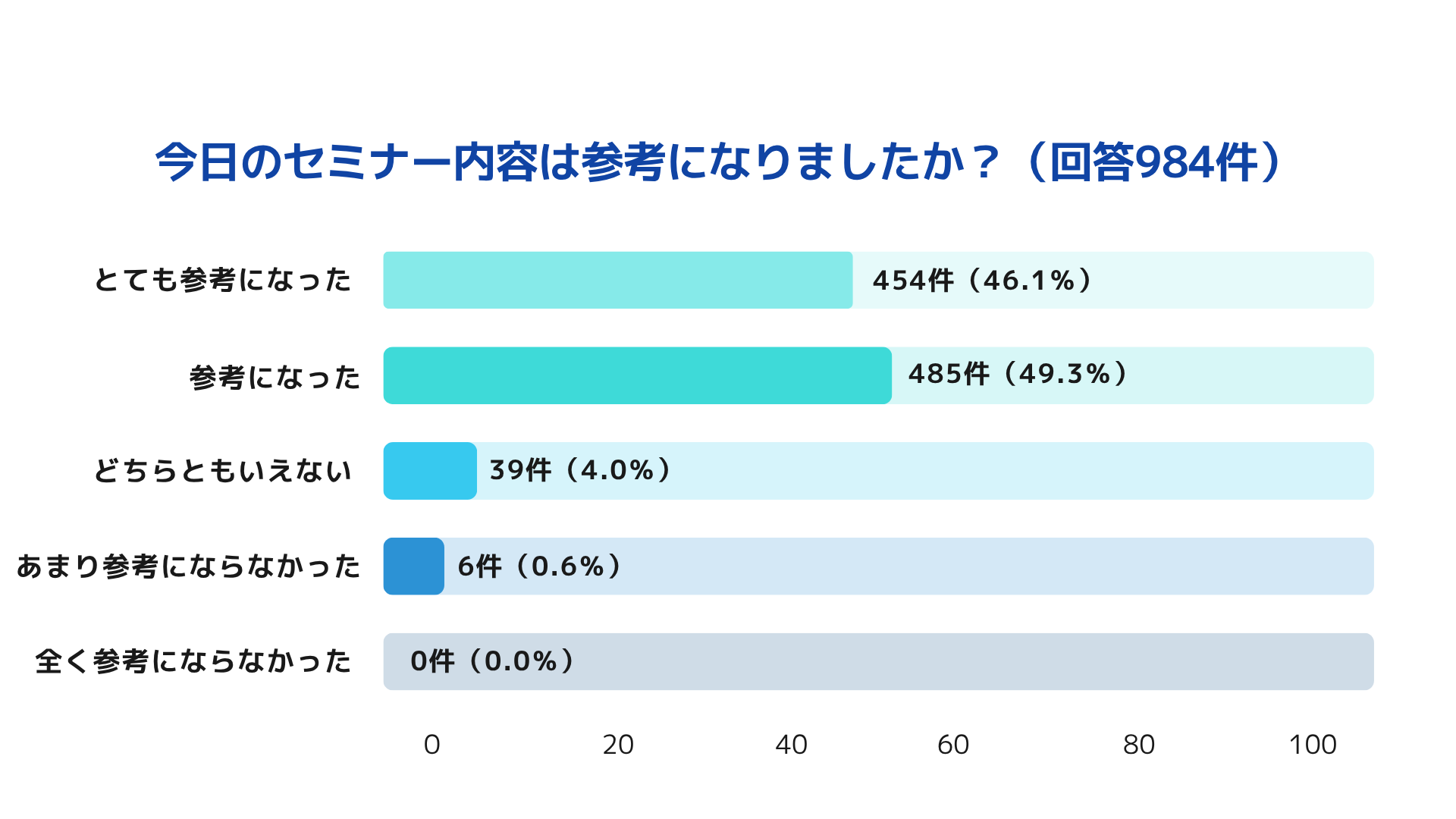 終了後のアンケートでは95%を超える方々に「とても参考になった・参考になった」のご回答をいただきました。